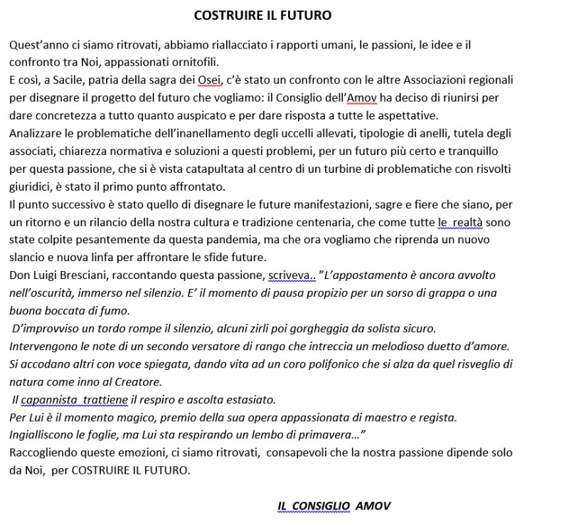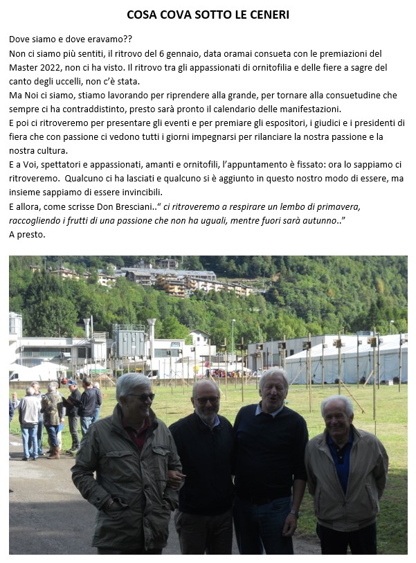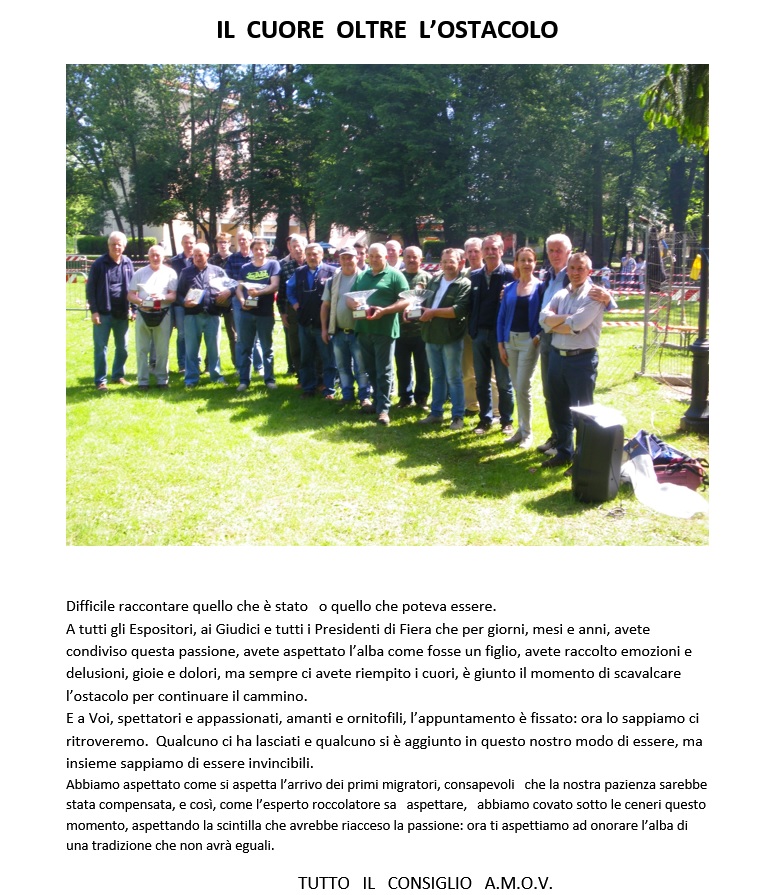 C’è ancora tanto da fare per rilanciare e valorizzare la nostra passione, ma con caparbietà e grazie all’impegno di tanti appassionati ornitofili tutti i pezzi del puzzle stanno tornando la loro posto.