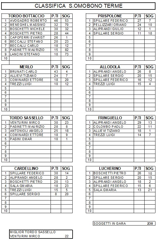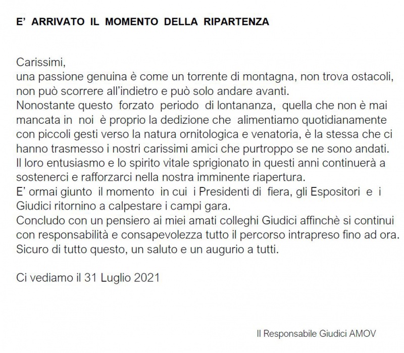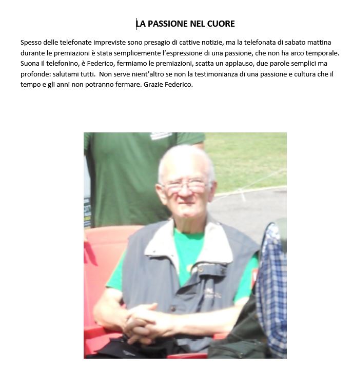 E magari dedicargli, nell’ animo, il miglior gorgheggio di qualche nostro piccolo campione. Di quelli che lui amava sentire e da intenditore commentare. E che da ovunque si trovi ora, continuerà a fare. Ciao Sergio, alla prossima gara.