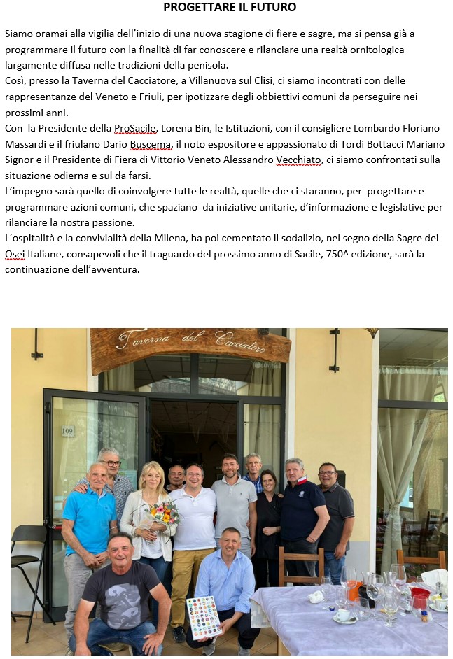 Oramai sta diventando un’ abitudine ritrovarsi a Villanuova sul Clisi per tracciare la strada da intraprendere per valorizzare le fiere e sagre ornitologiche che tanto caratterizzano molte manifestazioni.
